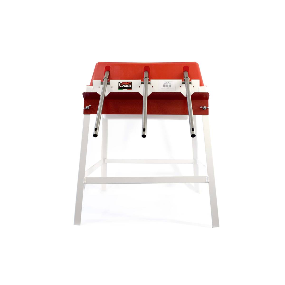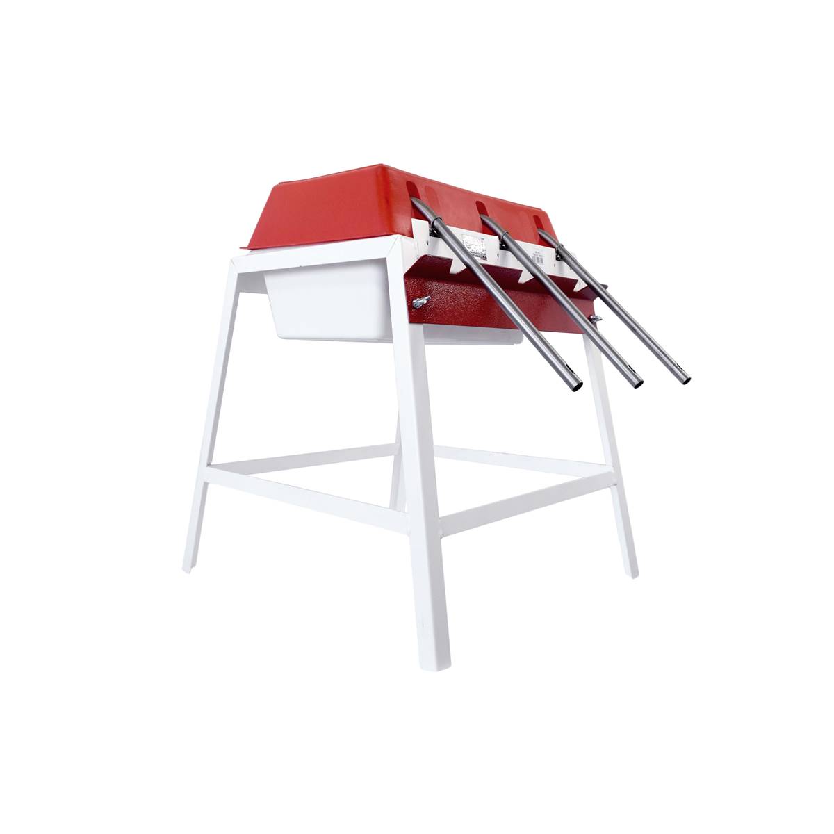 Montée sur un châssis en acier peint (rouge robuste), cette tireuse offre une stabilité parfaite lors des manipulations. Sa hauteur est étudiée pour limiter la fatigue de l'opérateur lors de sessions de mise en bouteille prolongées.